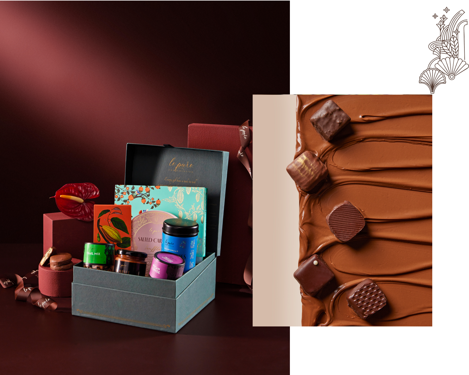 From single-origin bars and bonbons to custom chocolate sculptures and couture hampers, every Le Pure creation is an expression of imagination, precision, and purity.